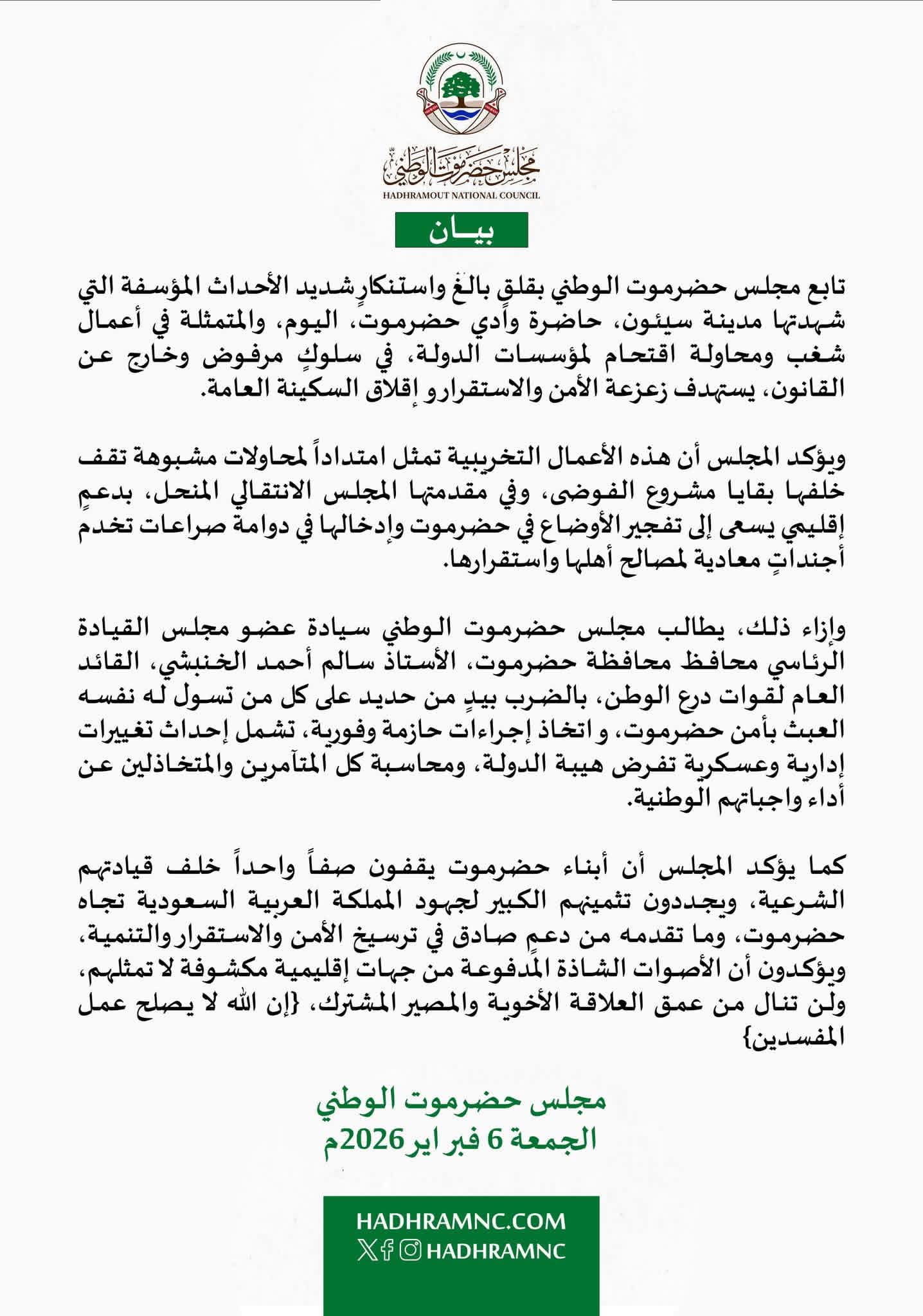 البيان الختامي لمظاهرة المهرة -سيحوت – الجمعة 6 فبراير 2026م