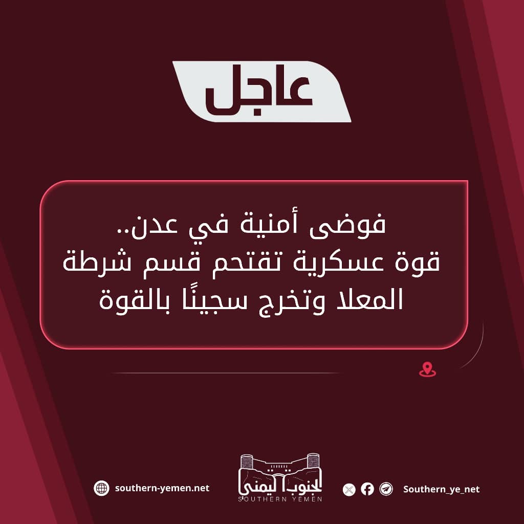فوضى أمنية في عدن.. قوة عسكرية تقتحم قسم شرطة المعلا وتخرج سجينًا بالقوة