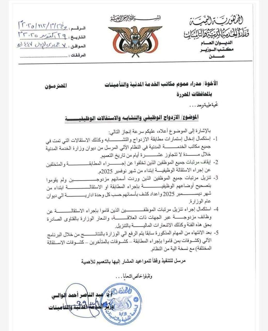 الحكومة تصدر قرارا بتوقيف مرتبات هؤلاء بعدن
