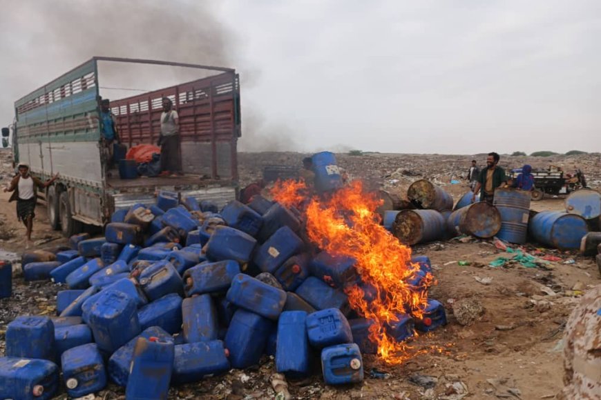 الداؤودي يشيد بجهود قسم صحة البيئة بضبط المخالفات..إتلاف ( 10 ) أطنان من المواد الكيميائية والزراعية منتهية الصلاحية في مديرية المنصورة بعدن.....