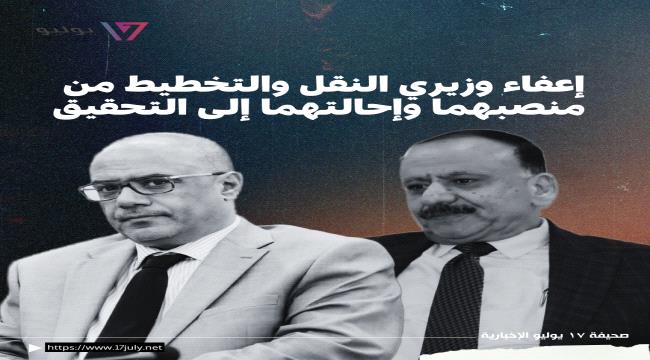 عاجل | نص قرار مجلس القيادة الرئاسي بإعفاء وزيري النقل والتخطيط والتعاون الدولي واحالتهما للتحقيق