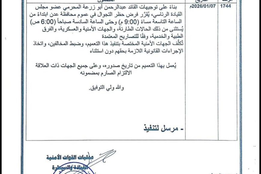 لتعزيز الاستقرار .. القائد المحرّمي يوجّه بفرض حظر التجوال ليلا في العاصمة المؤقتة عدن