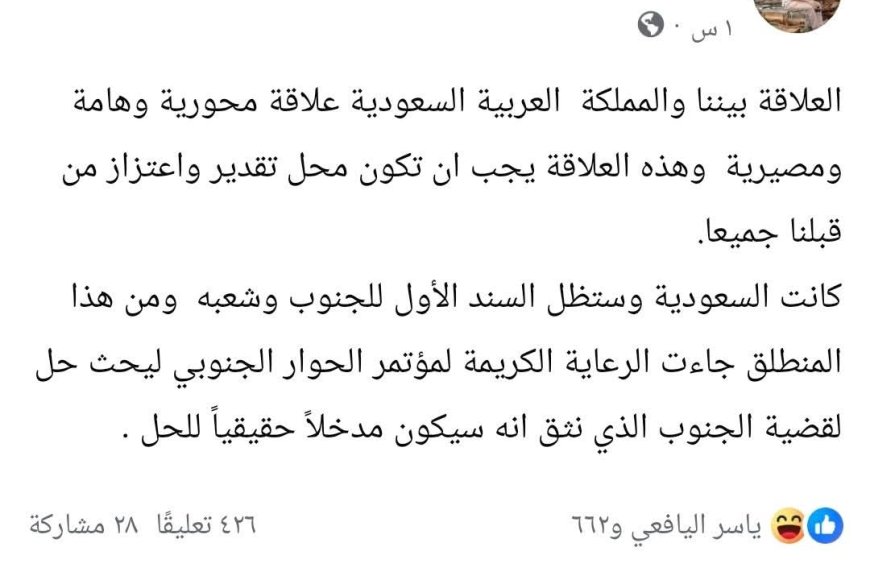 صلاح العاقل: السعودية سند الجنوب ورعايتها للحوار تمثل مدخلاً حقيقيا لحل القضية الجنوبية