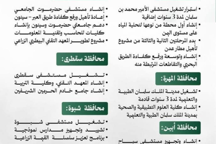 من ضمنها دعم تشغيل مستشفيات أوقفت الإمارات دعمها..السعودية تعلن حزمة مشاريع تنموية في اليمن بقيمة 1.9 مليار ريال سعودي