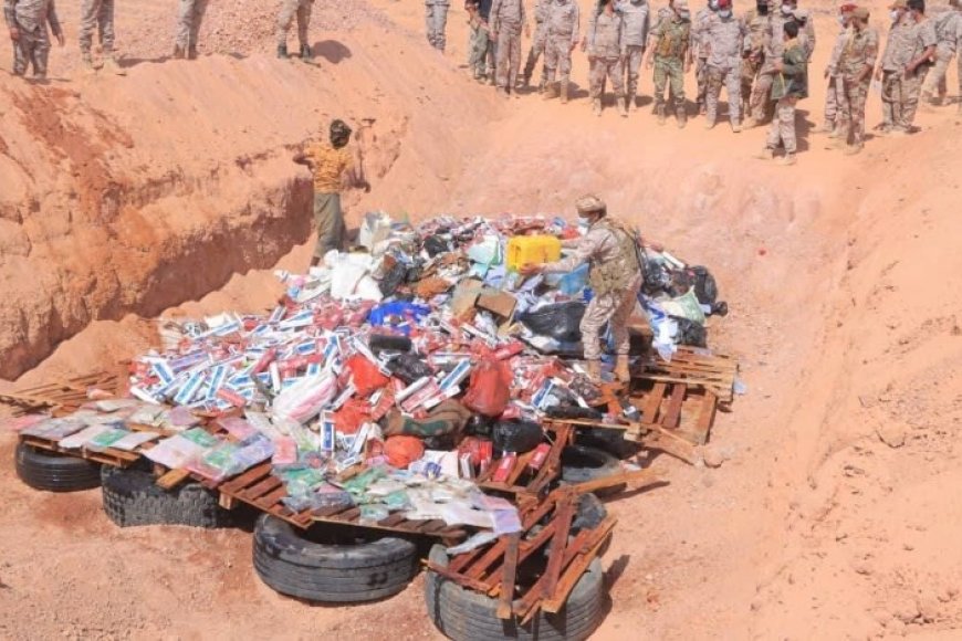 قيادة كتيبة منفذ الوديعة تُتلف كميات ضخمة من الممنوعات بينها 594 كجم من الحشيش وأكثر من 118ألف حبة كبتاجون....