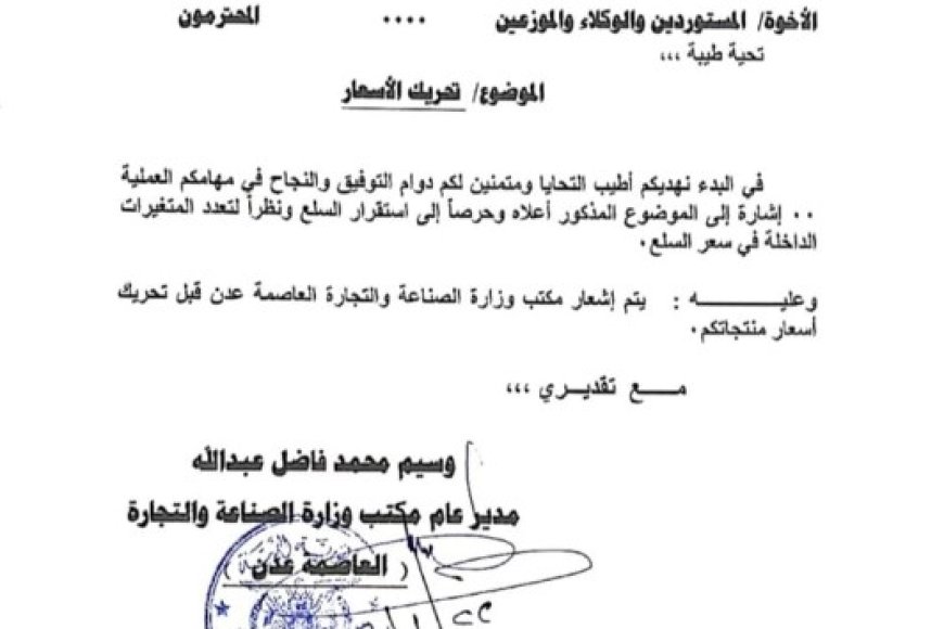 مكتب صناعة العاصمة عدن يصدر هذا التعميم الهام ...