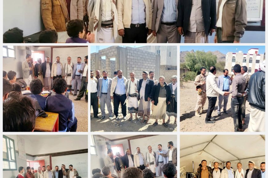 المدير بكر الشاعري يتفقد مدرسة الشهيد صالح بن صالح ويتعهد باستكمالها، ويبحث إعادة تشغيل المركز الصحي بغول الديمة