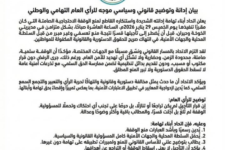 بيان إدانة وتوضيح قانوني وسياسي موجه للرأي العام التهامي والوطني...