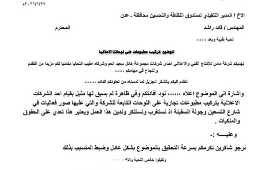 مجهولون يتعدون على لوحات إعلانية تابعة لشركة ماس في عدن....