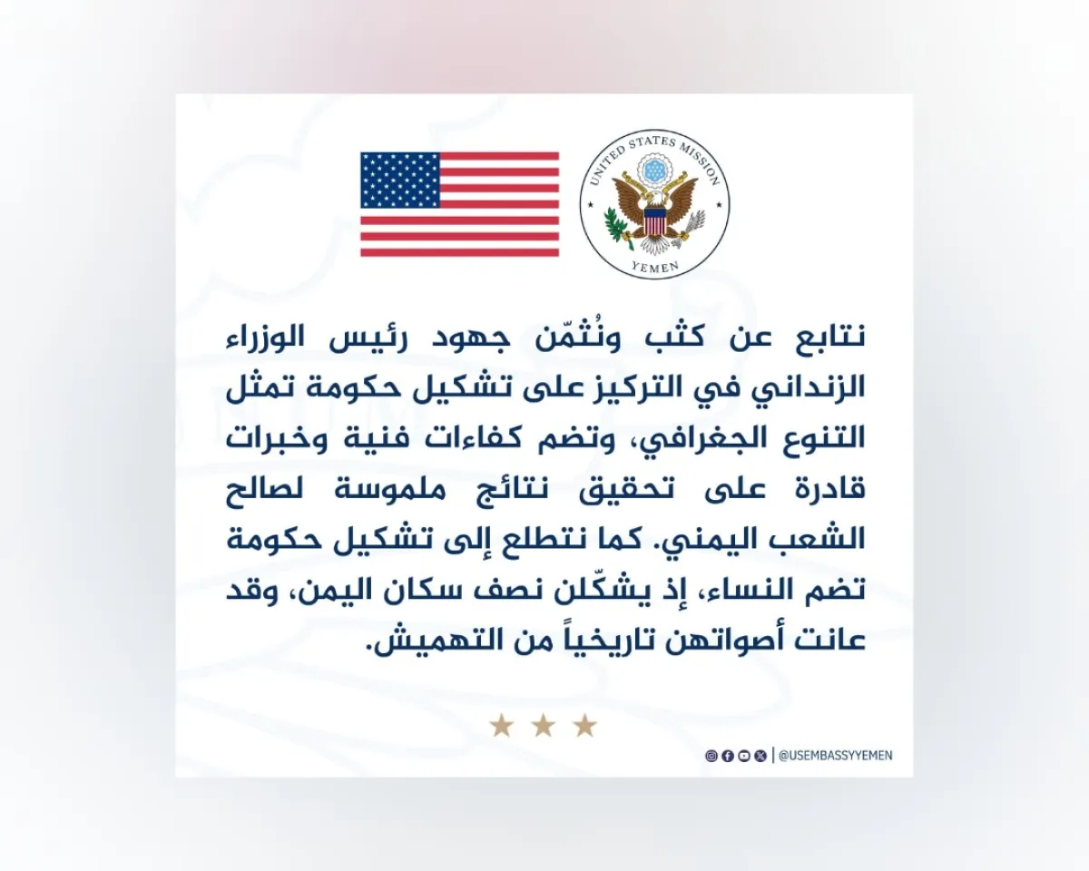 واشنطن: نتابع جهود تشكيل حكومة يمنية تمثل التنوع الجغرافي