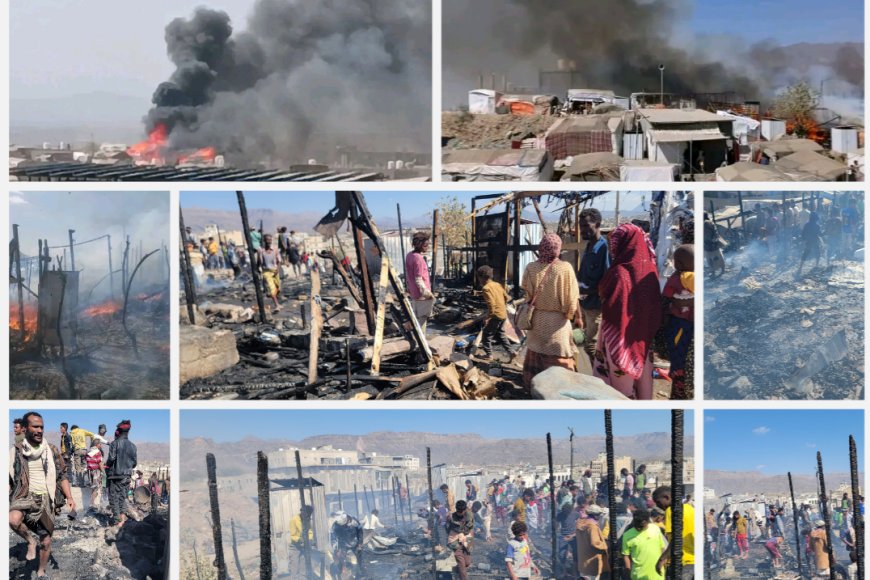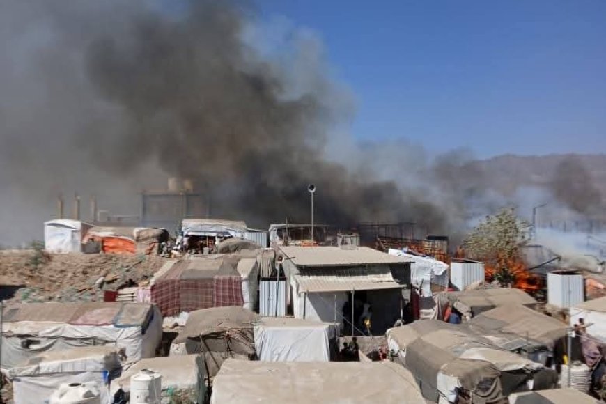 عاجل:حريق يلتهم مخيم الصومال في قعطبة بالضالع وسط حالة من الهلع