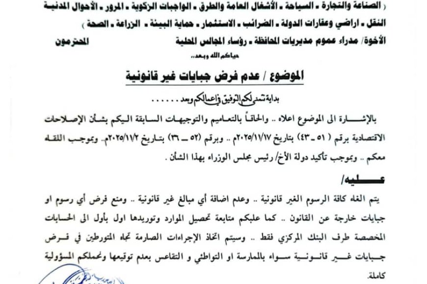محافظ لحج يصدر توجيهات بمنع فرض أي جبايات غير قانونية في المكاتب الإيرادية