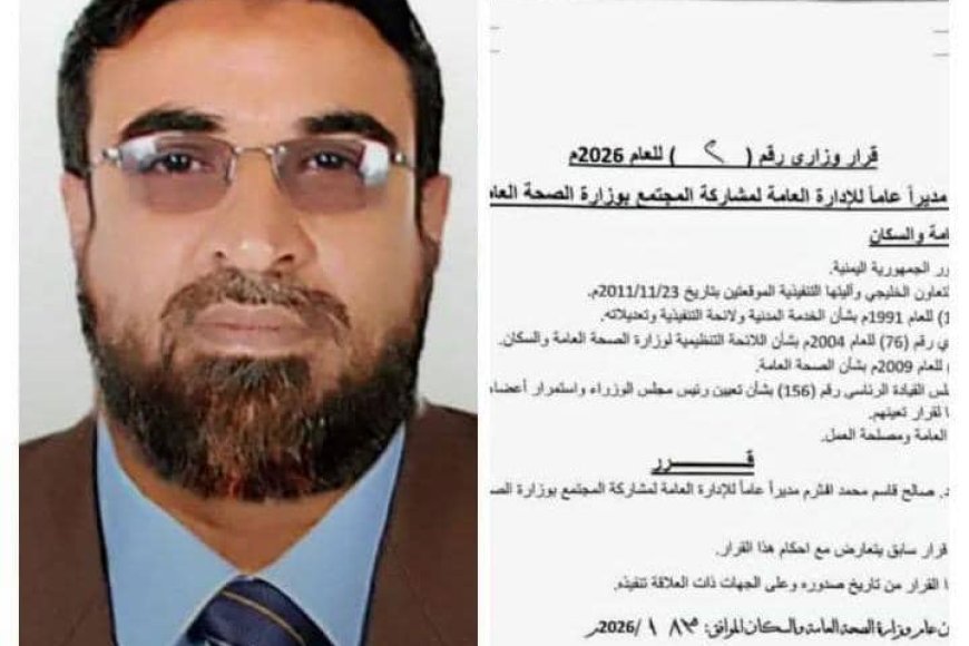 بدلاً عن الدكتور محمد محسن ربيد..قرار وزاري بتعيين مدير عام جديد للمشاركة المجتمعية في وزارة الصحة