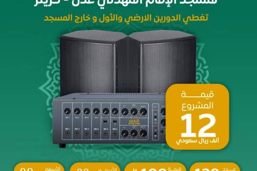 مسجد الإمام المهدلي بكريتر يناشد أهل الخير لاستكمال توفير منظومة صوت متكاملة