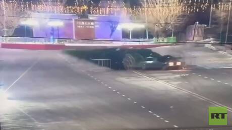 كازاخستان.. سيارة تطيح بشجرة عيد الميلاد الرئيسية في مدينة سارياغاش